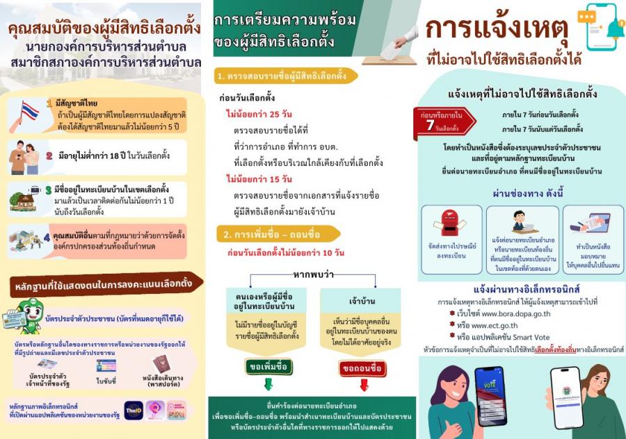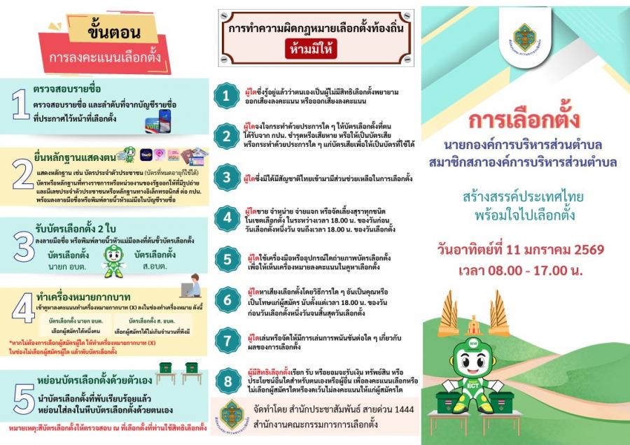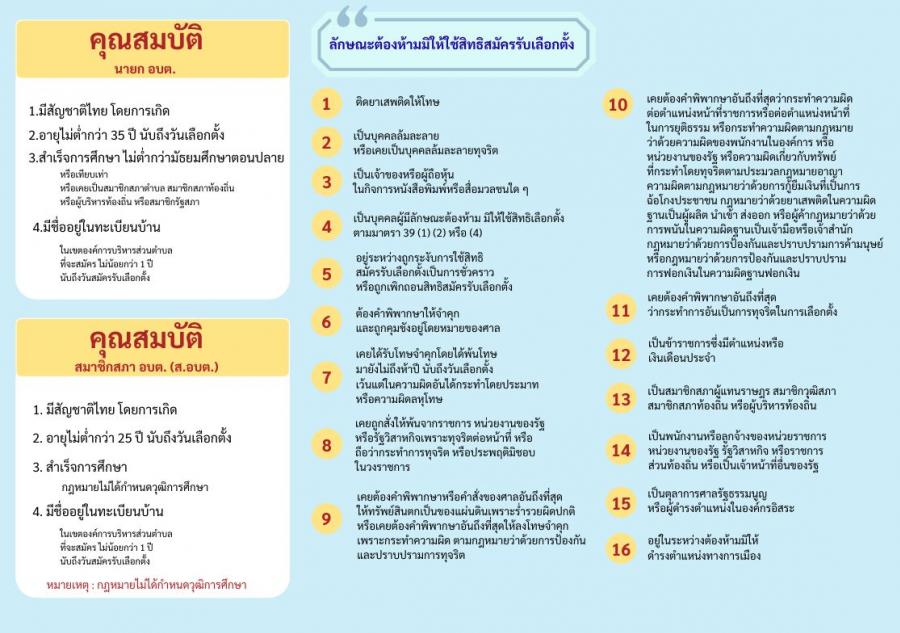 แผ่นพับประชาสัมพันธ์คุณสมบัติลักษณะต้องห้าม ของผู้สมัคร นายกองค์การบริหารส่วนตำบล สมาชิกสภาองค์การบริหารส่วนตำบลสัมปทวนและ การเลือกตั้ง นายกองค์การบริหารส่วนตำบล สมาชิกสภาองค์การบริหารส่วนตำบล