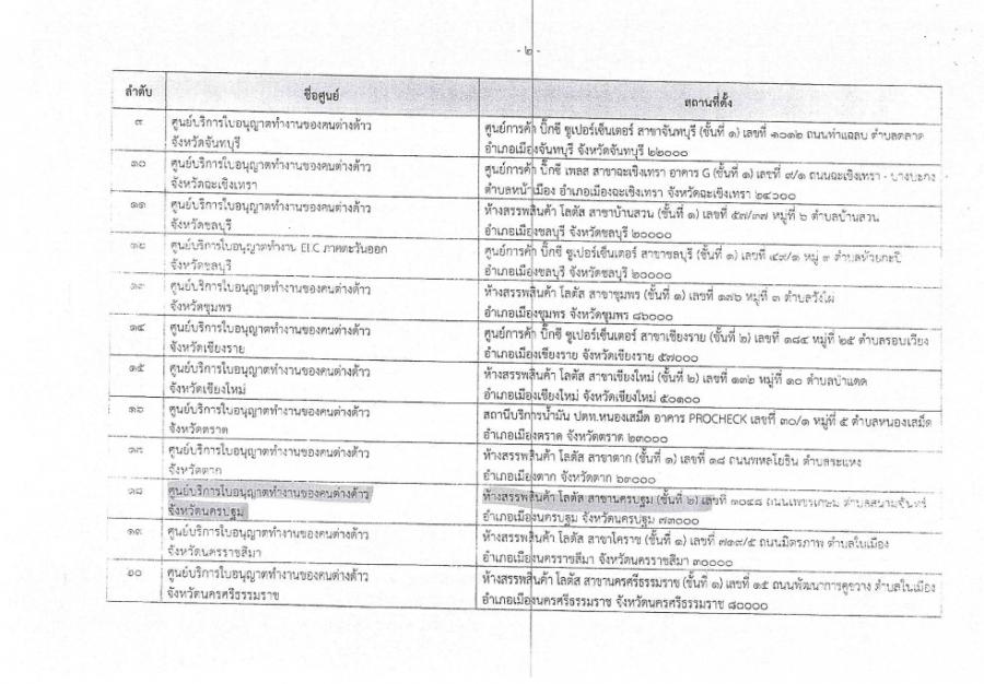 สถานที่ตั้งศูนย์บริการขอใบอนุญาตทำงานของคนต่างด้าว ในจังหวัดนครปฐม ตั้งอยู่ที่ ห้างสรรพสินค้า โลตัส สาขานครปฐม (ชั้นที่ 2) อำเภอเมืองนครปฐม จังหวัดนครปฐม