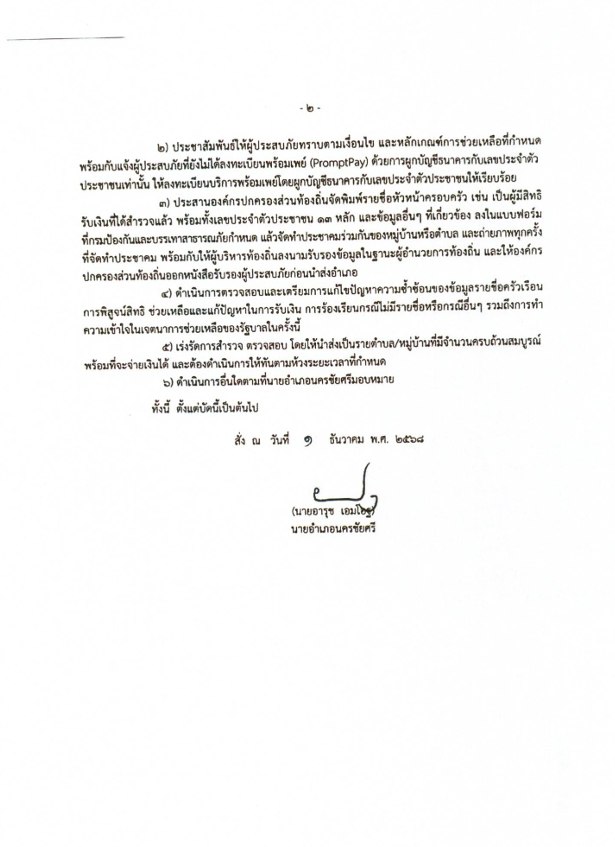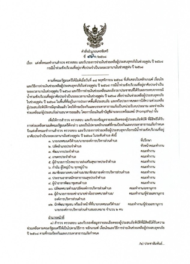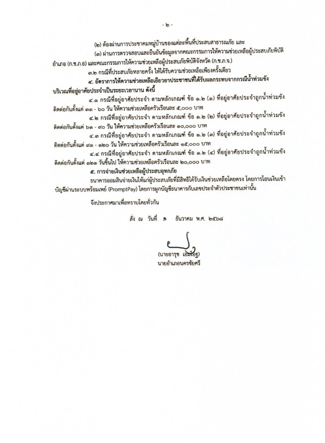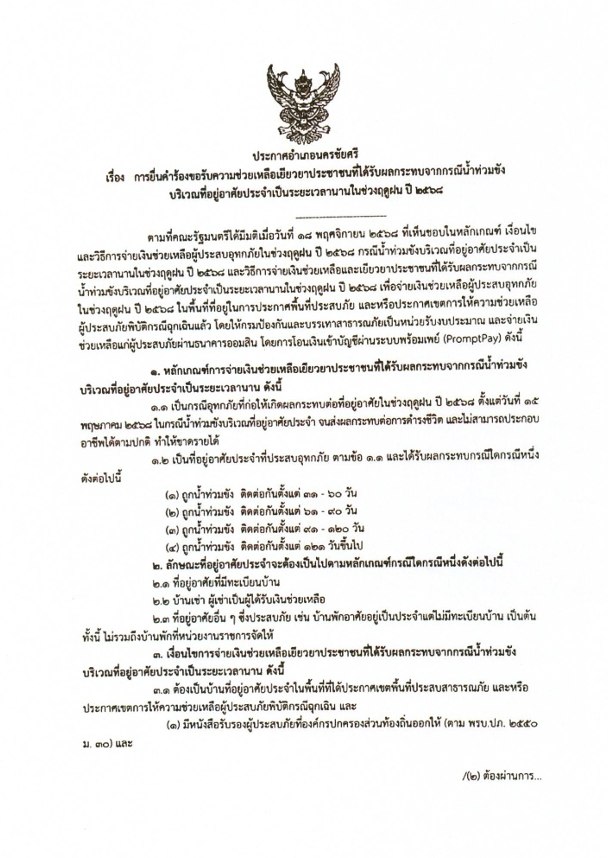 ประกาศยื่นคำร้องขอรับความช่วยเยียวยาประชาชนที่ได้รับผลกระทบจากกรณีน้ำท่วมขัง บริเวณที่อยู่อาศัยประจำเป็นระยะเวลานานในช่วงฤดูฝน ปี 2568