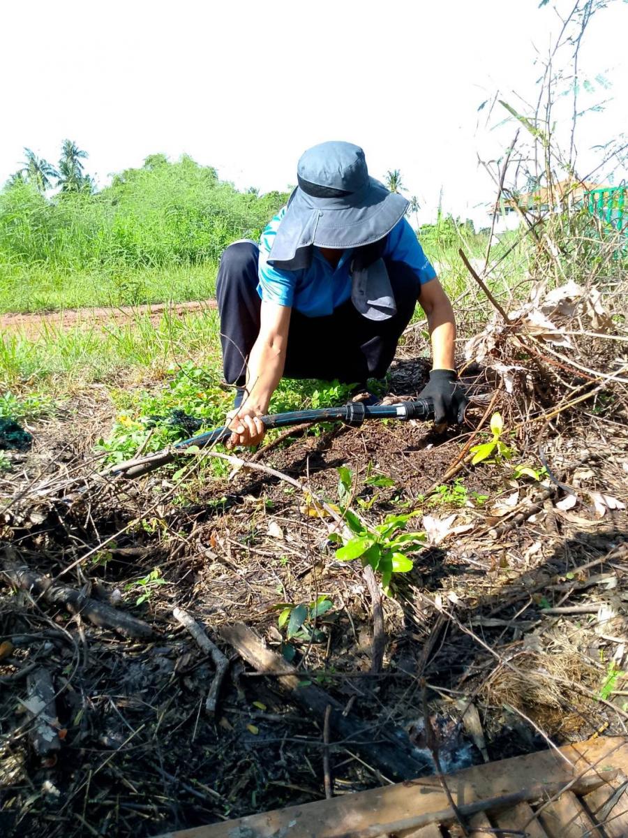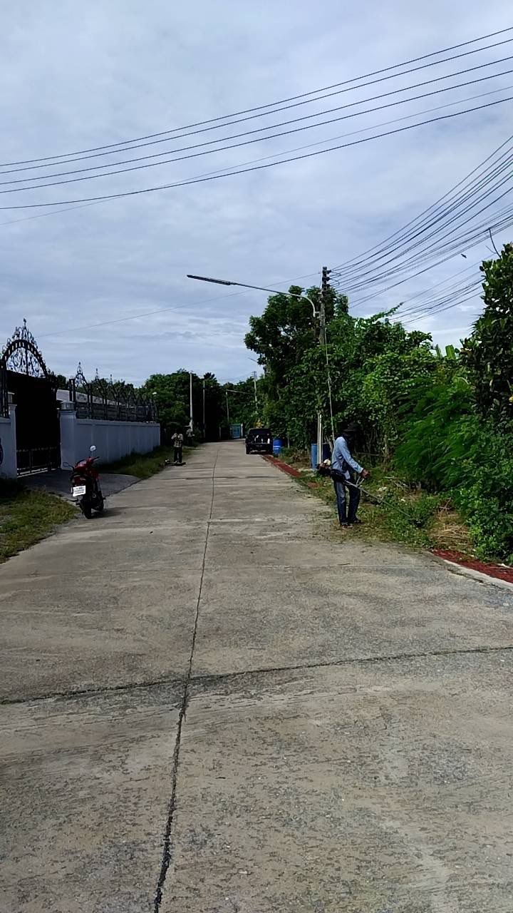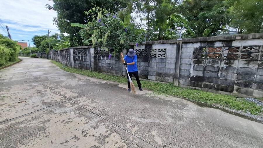 ปรับภูมิทัศน์ ตัดหญ้า เพื่อให้เกิดความสะอาด สวยงาม บริเวณ ม.1
