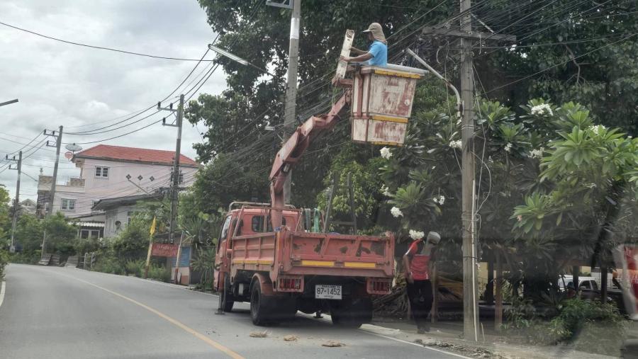 ซ่อมไฟทางสาธารณะ และ เปลี่ยนชุด LED บริเวณ ม.3