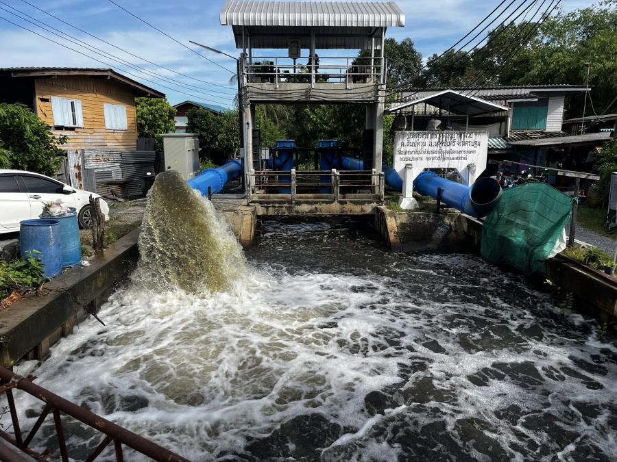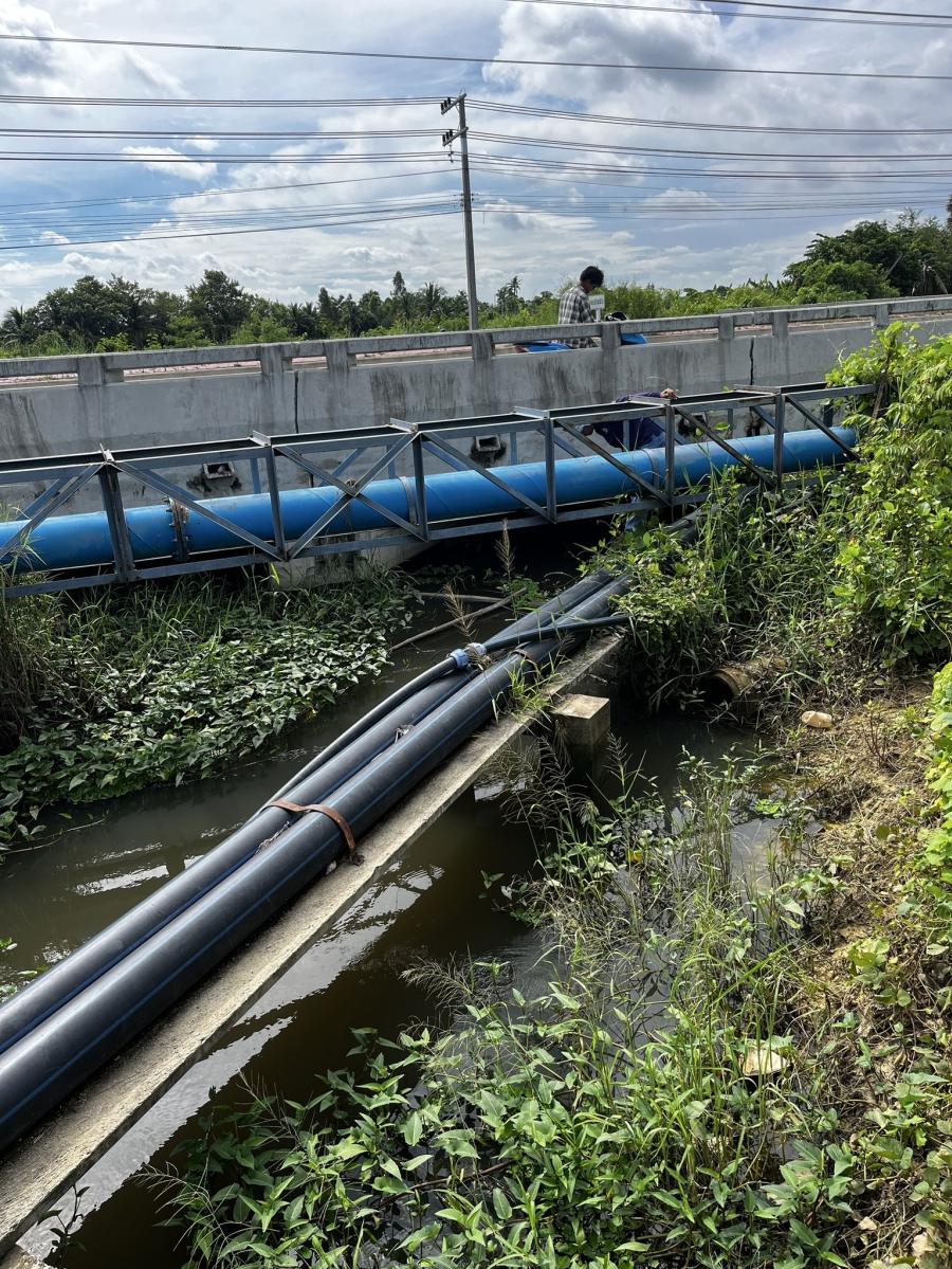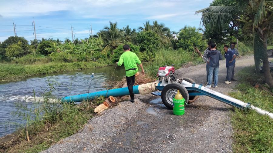 สมาชิกฯ ม.1 ,ผอ.กองช่างวัชพนธ์ ยุบลพันธ์ และเจ้าหน้าที่ดำเนินการสูบน้ำ เพื่อเร่งระบายน้ำ บริเวณ ม.1 ม.2 และประตูน้ำคลองบ้านกล้วย