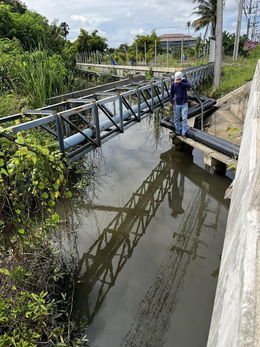 เจ้าหน้าที่ตรวจดูระดับน้ำในพื้นที่ตำบลสัมปทวน
