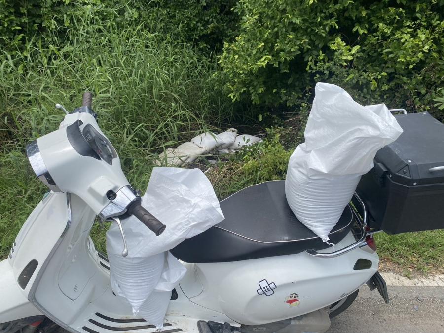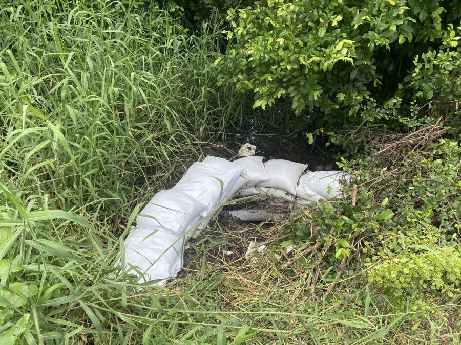 สมาชิกฯ ม.6 เสริมแนวกระสอบทราย เพื่อป้องกันน้ำท่วม บริเวณ ม.6