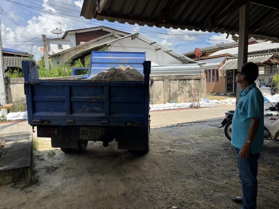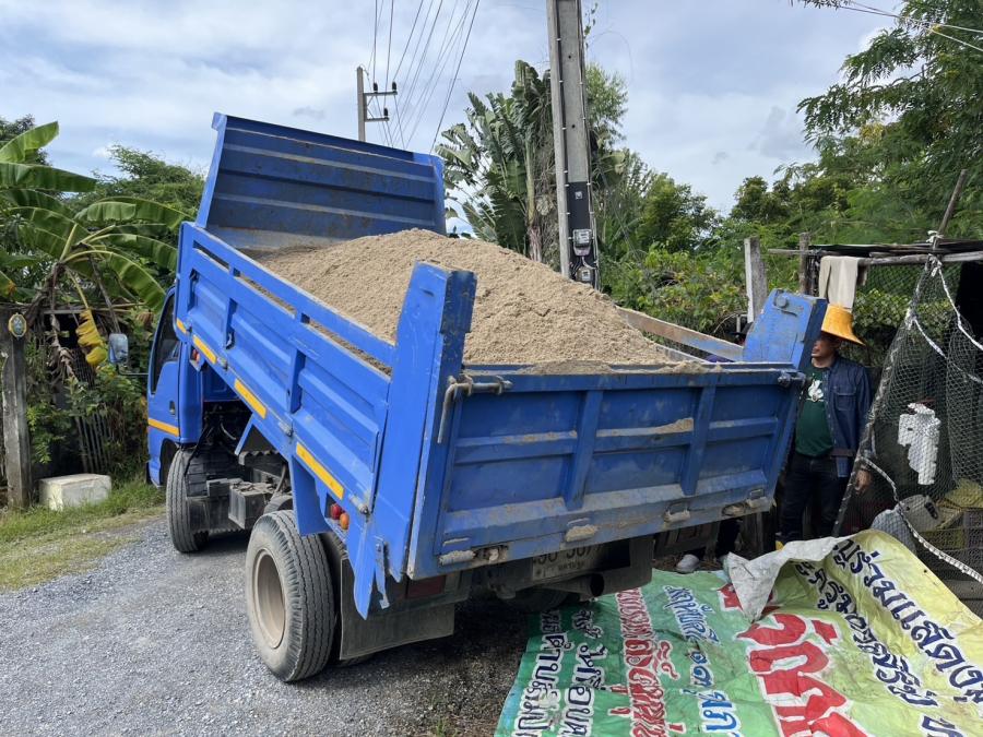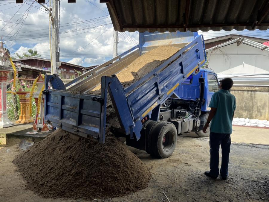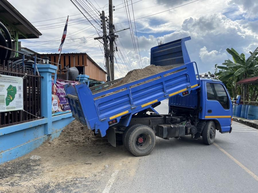 ลงทราย เพื่อใส่กระสอบทรายทำเป็นแนวคันกั้นน้ำ เพื่อป้องกันน้ำท่วม บริเวณ ต.สัมปทวน