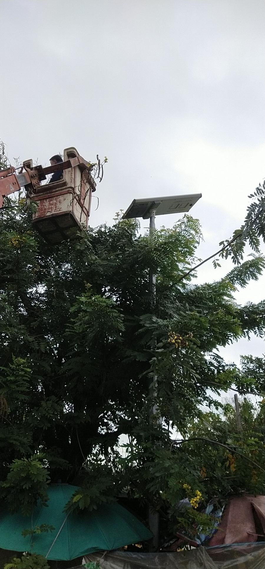 ปรับภูมิทันศน์ ตัดกิ่งไม้ที่บังไฟโซล่าเซลล์ บริเวณ ม.4