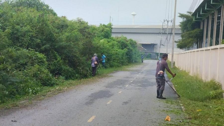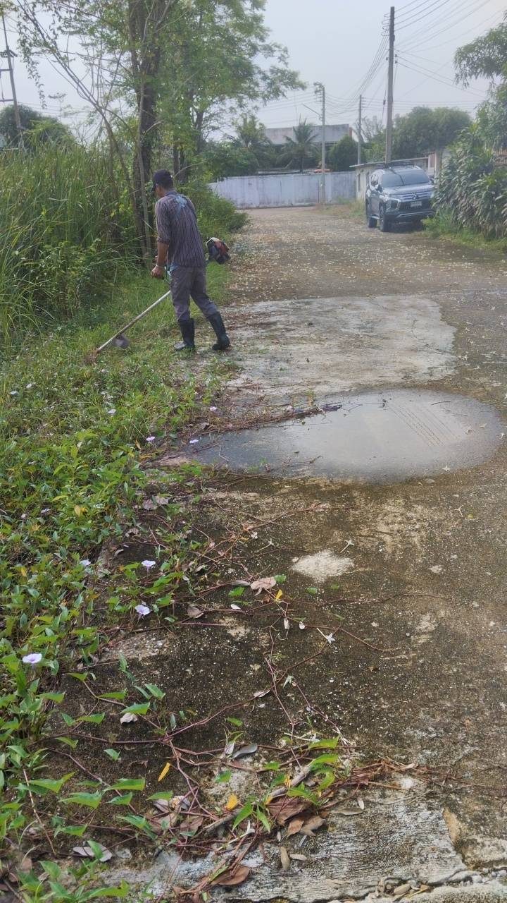 เจ้าหน้าที่ปรับภูมิทัศน์ ตัดหญ้า บริเวณ ม.4 และหมู่บ้านกรีนฟิลด์ ม.6