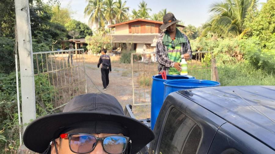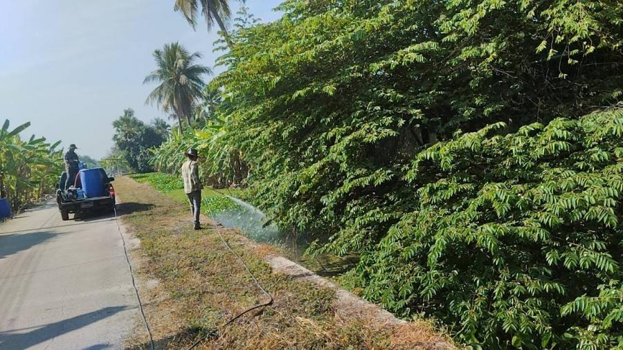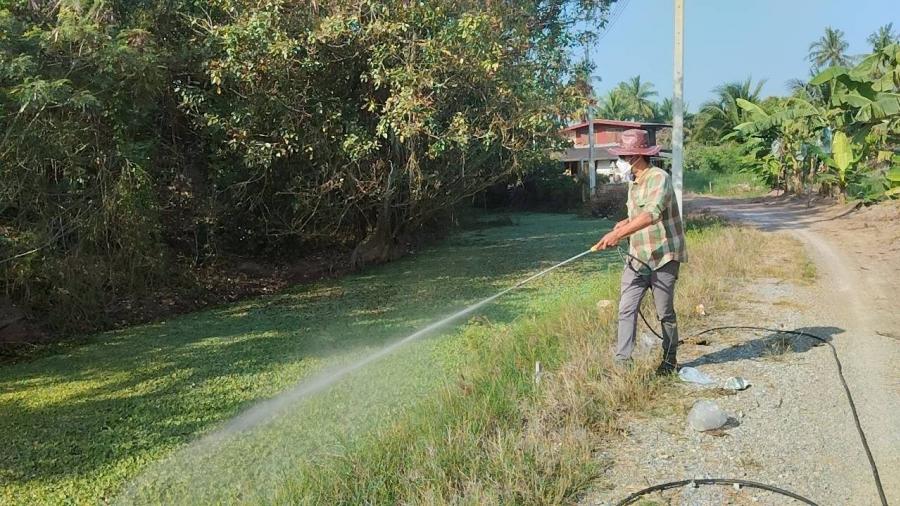 เจ้าหน้าที่ฉีดพ่นยากำจัดวัชพืช บริเวณ ม.6