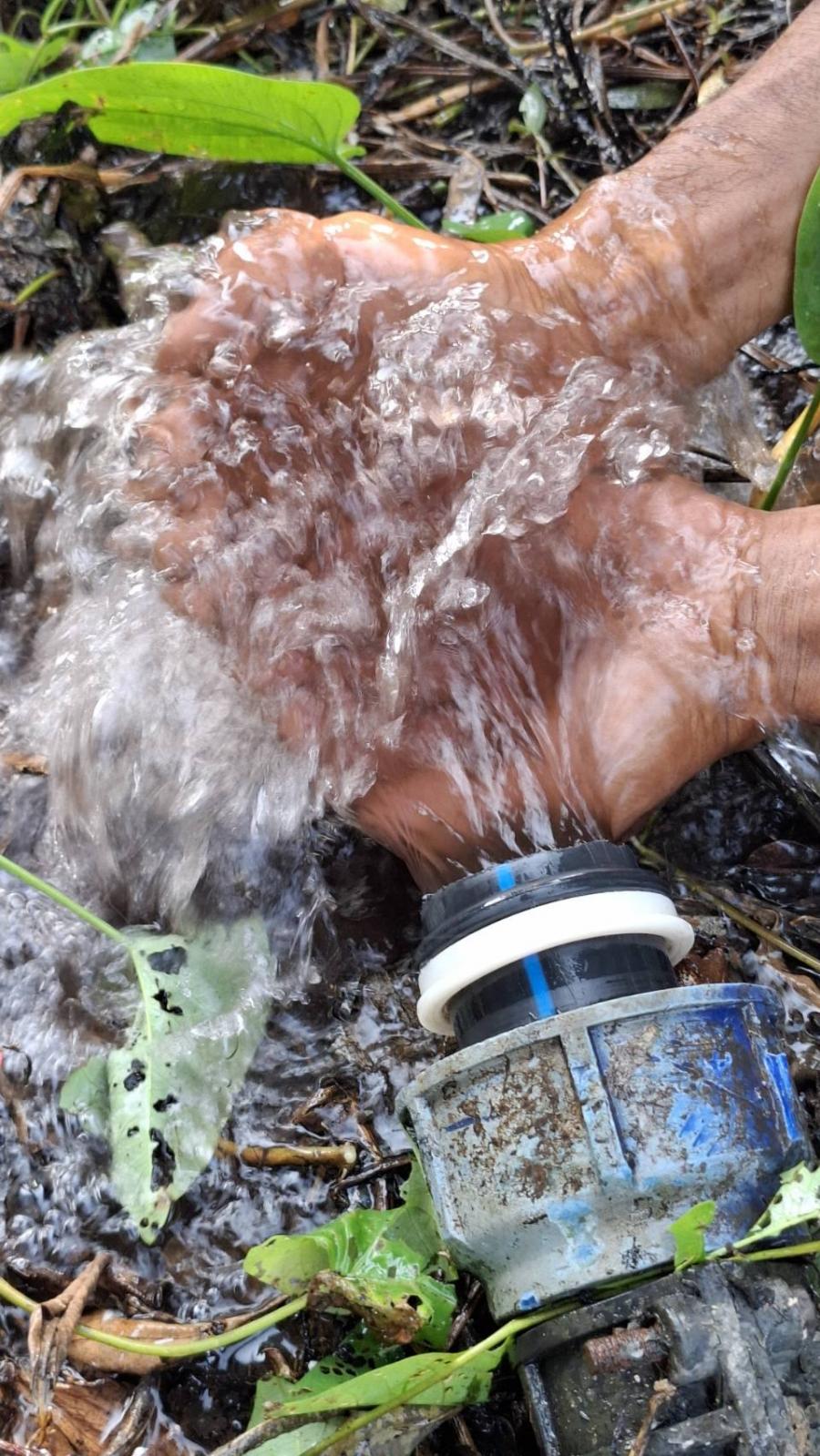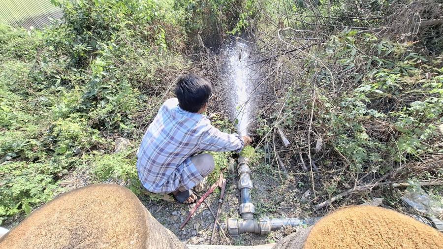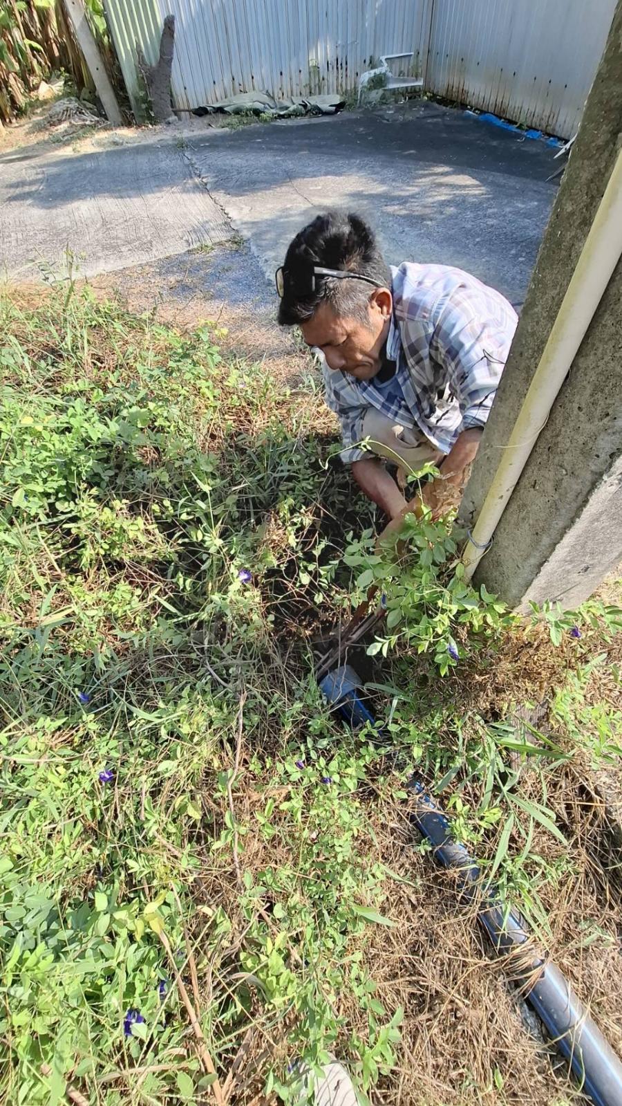 โบลว์น้ำทิ้ง เพื่อระบายตะกอนที่ค้างท่อประปา บริเวณ ม.1 และ ม.5
