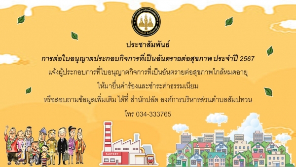 การต่อใบอนุญาตประกอบกิจการที่เป็นอันตรายต่อสุขภาพ ประจำปี 2567