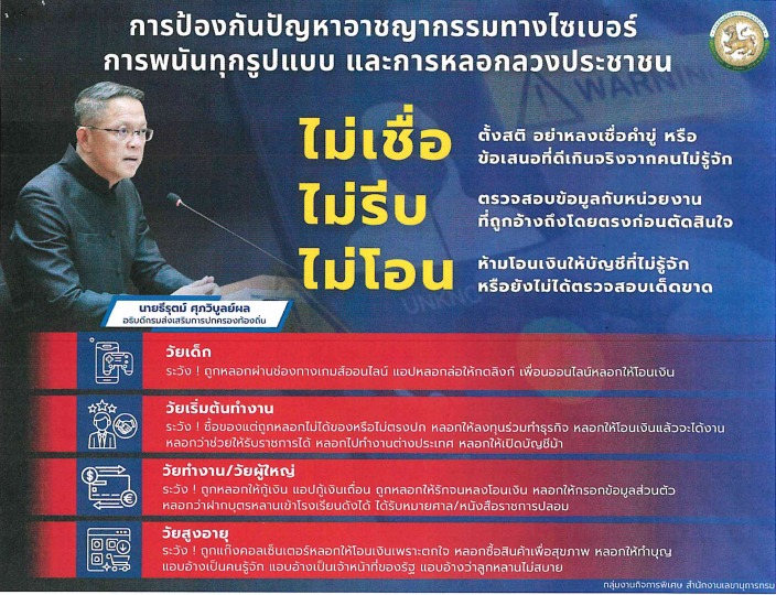 การป้องกันปัญหาอาชญากรรมทางไซเบอร์ การพนันทุกรูปแบบ และการหลอกลวงประชาชน