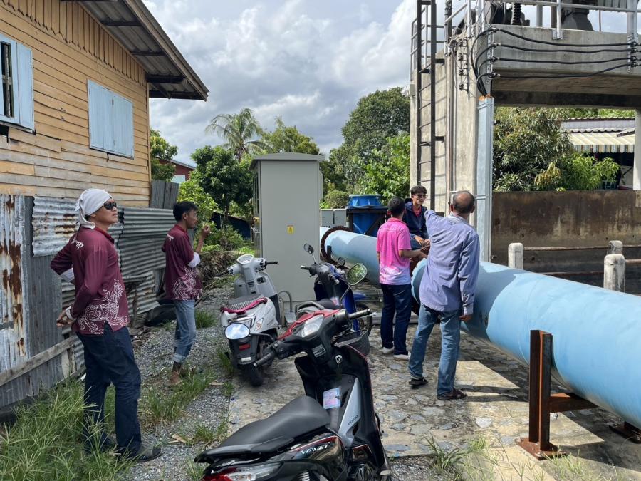 ตั้งเครื่องสูบน้ำ ม.2 / อุดรอยรั่ว ริมคลอง ม.2 / ตรวจเช็คกล้องวงจรปิด สะพานหน้าวัดกกตาล